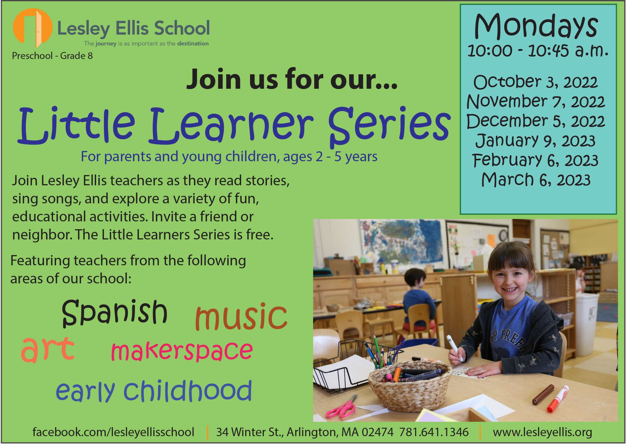 Join us on Mondays for our Little Learners Series. Aimed at our youngest learners, the Little Learners Series is an opportunity for children and parents to experience the special learning community that is Lesley Ellis. We hope to see you there!